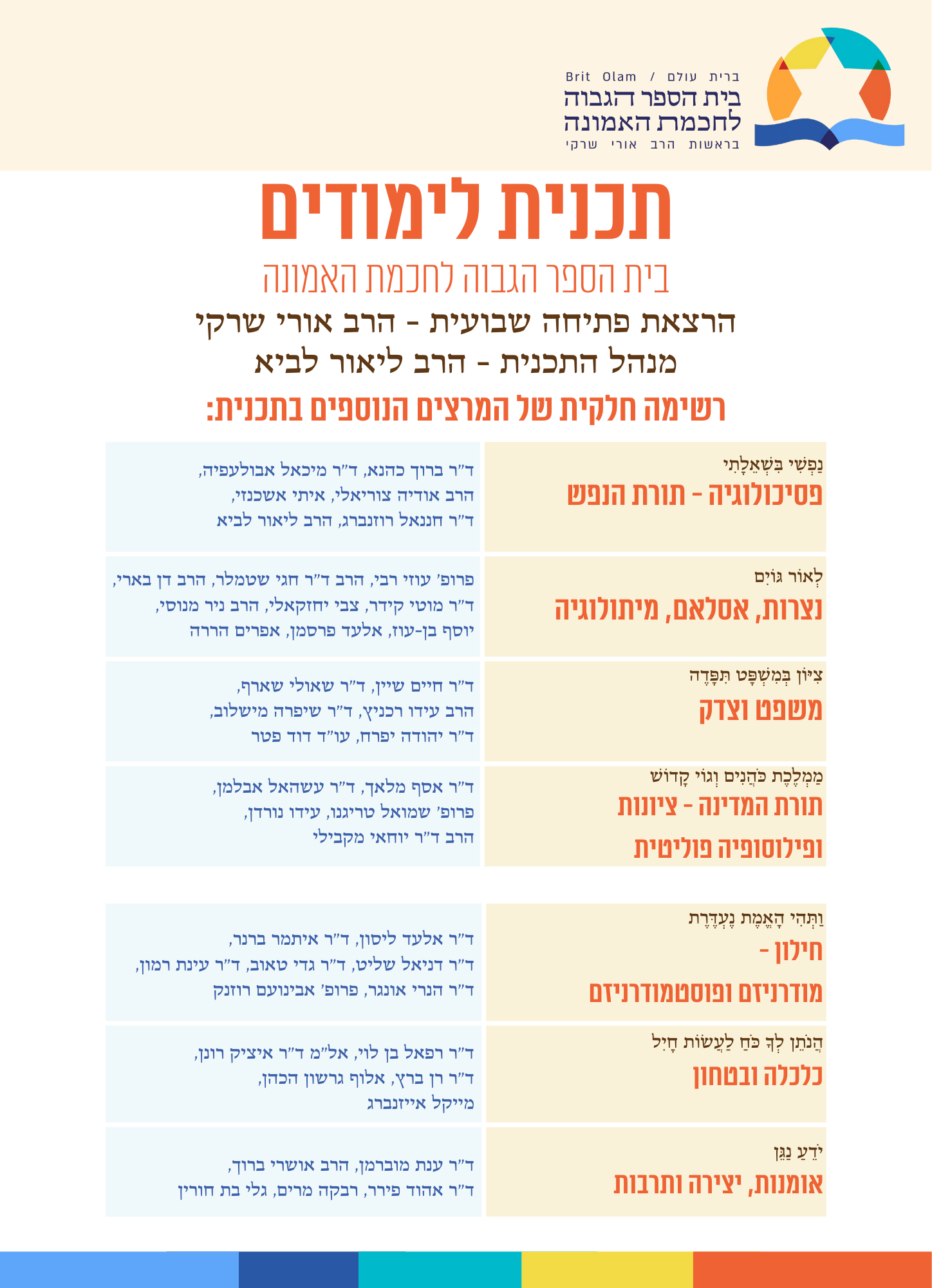 בית הספר הגבוה לחכמת האמונה מציע מסע לימודי מעמיק אל תוך עולם המחשבה הישראלית. התוכנית מיועדת למבקשים לברר את יסודות האמונה, להבין את תהליכי הגאולה ולהתמודד עם אתגרי השעה מתוך רוחב דעת.